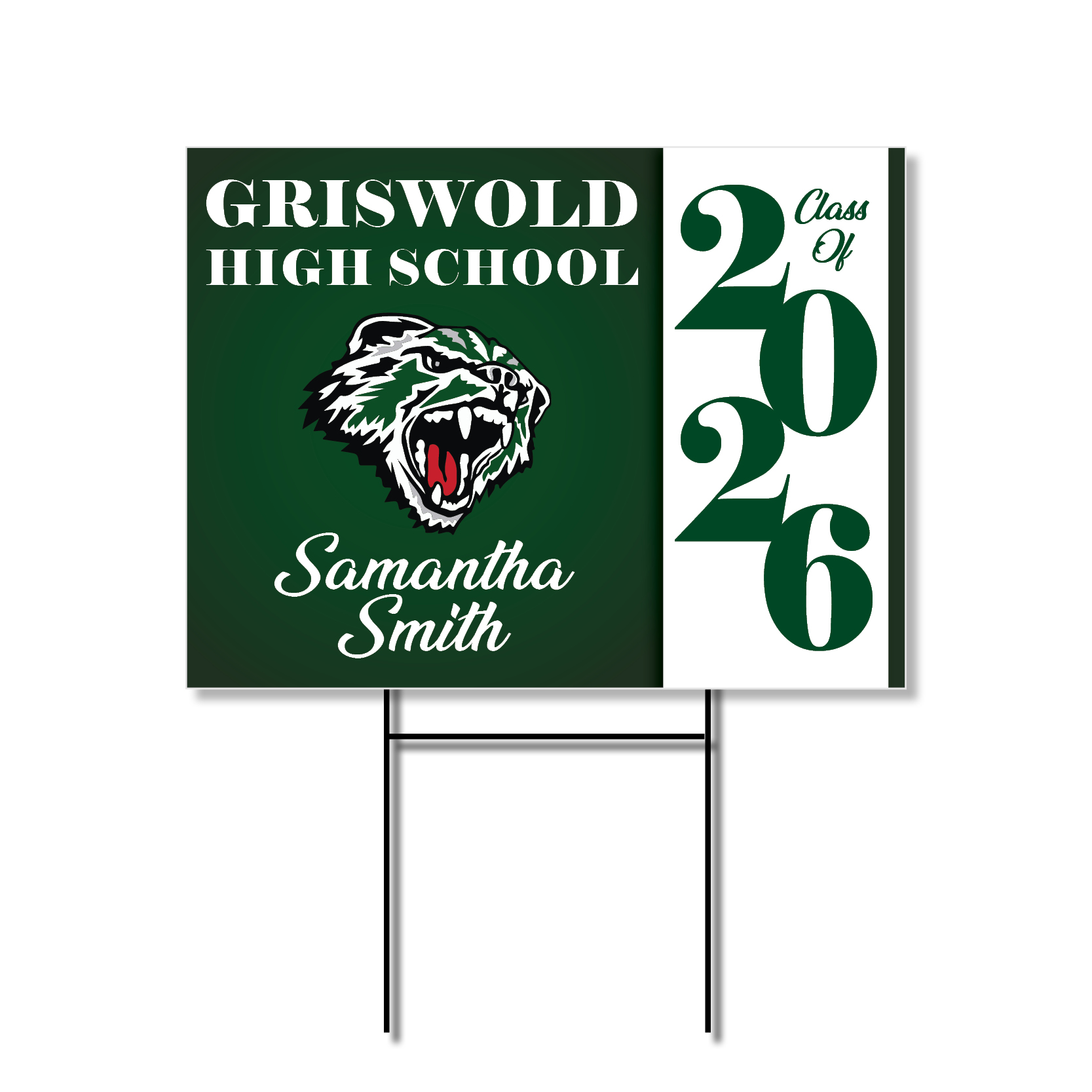 Celebrate your graduating senior with this Griswold High School Name Yard Sign—a clean, bold way to showcase their achievement and school pride.